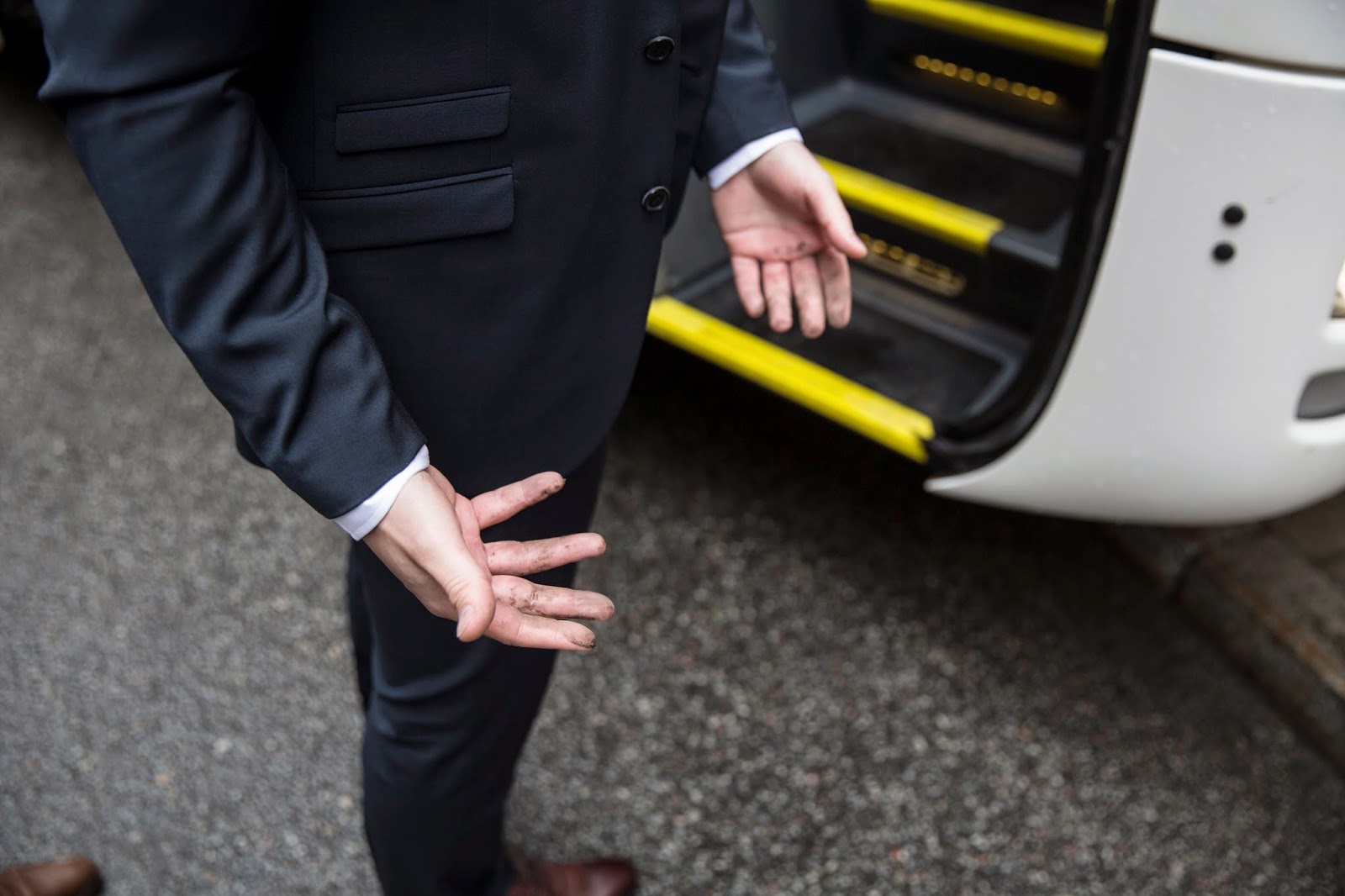 Bussen var lång, vägarna runt kyrkan i Stockholm var smala. Det gick en bit sedan kom en felparkerad Skoda vid nästa korsning och bussen körde "fast".